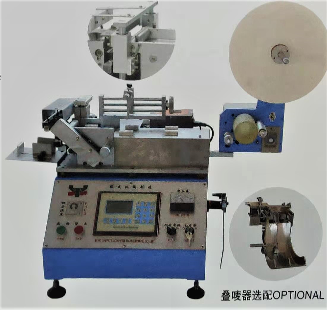 The machine is suitable for cutting of all types printed/Woven Label, It has Hot and cold option, Also Cold cut with stacked option too. This machine is smart and easy control. Max cutting speed is about 2000 Dozens per hour, Accurate cutting size, Clear eye sensor scanning, stable performance on cutting. Material Availability: Satin, Cotton, Nylon, Paper, Woven.